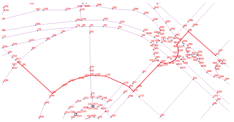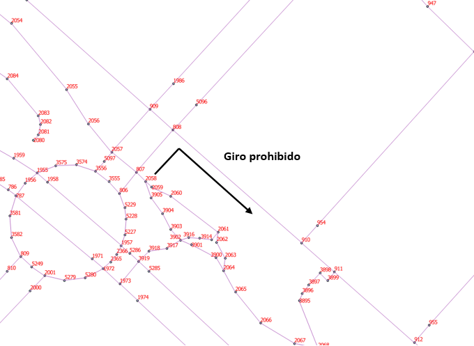 Se puede dar el caso de que tengamos una restricción o giro prohibido, por ejemplo entre el nodo 808 y el destino final el nodo 910.