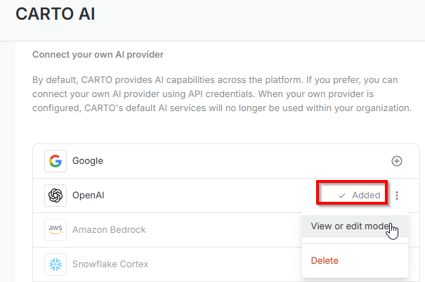 Una vez activada nos pedirá conectar con nuestro programa de IA, con el que tengamos una cuenta: Google u OpenAI: