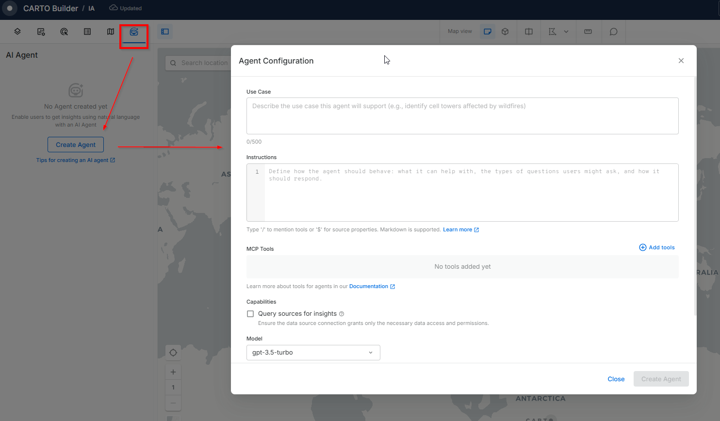 Y también lo tendremos incorporado en “Carto Builder” y se podrá definir las características de nuestro nuevo agente IA que nos ayude a resolver problemas en nuestro futuro proyecto.