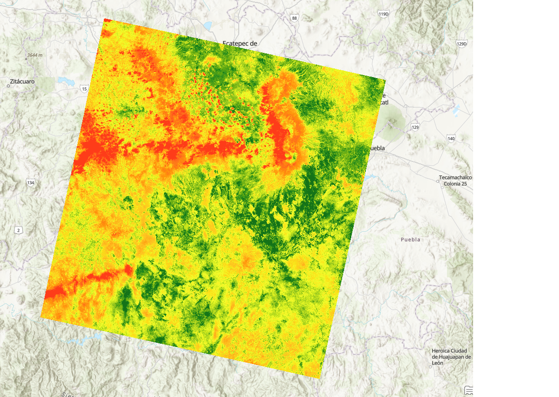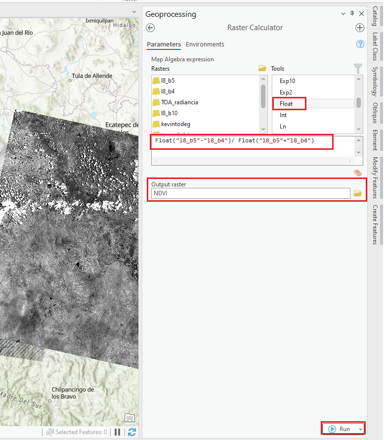 Ahora vamos a calcular el NDVI de las bandas 4 y 5 de Landsat, como se muestra a continuación:
