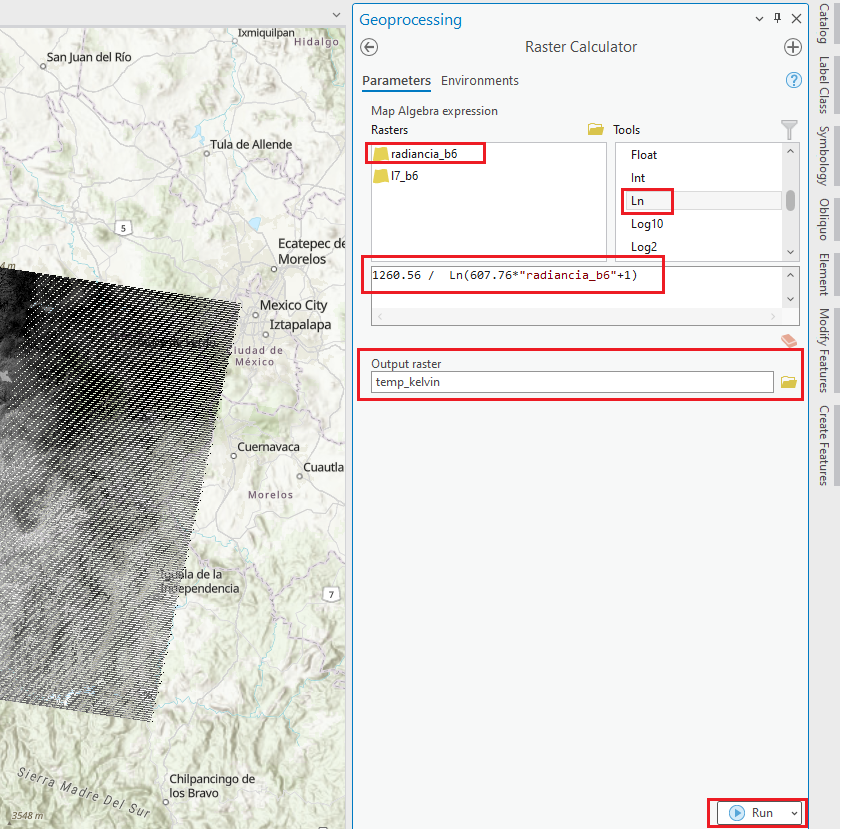 Lo siguiente es realizar las conversiones a través de los cálculos para estimar la temperatura de la superficie terrestre (LST). Se realiza siguiendo las siguientes formulas: