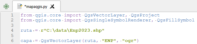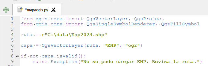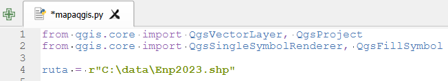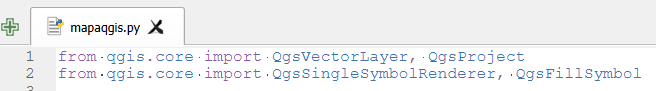 1.Importamos las clases para trabajar con Python en QGIS, nota la diferencia con el uso de Python en ArcGIS.