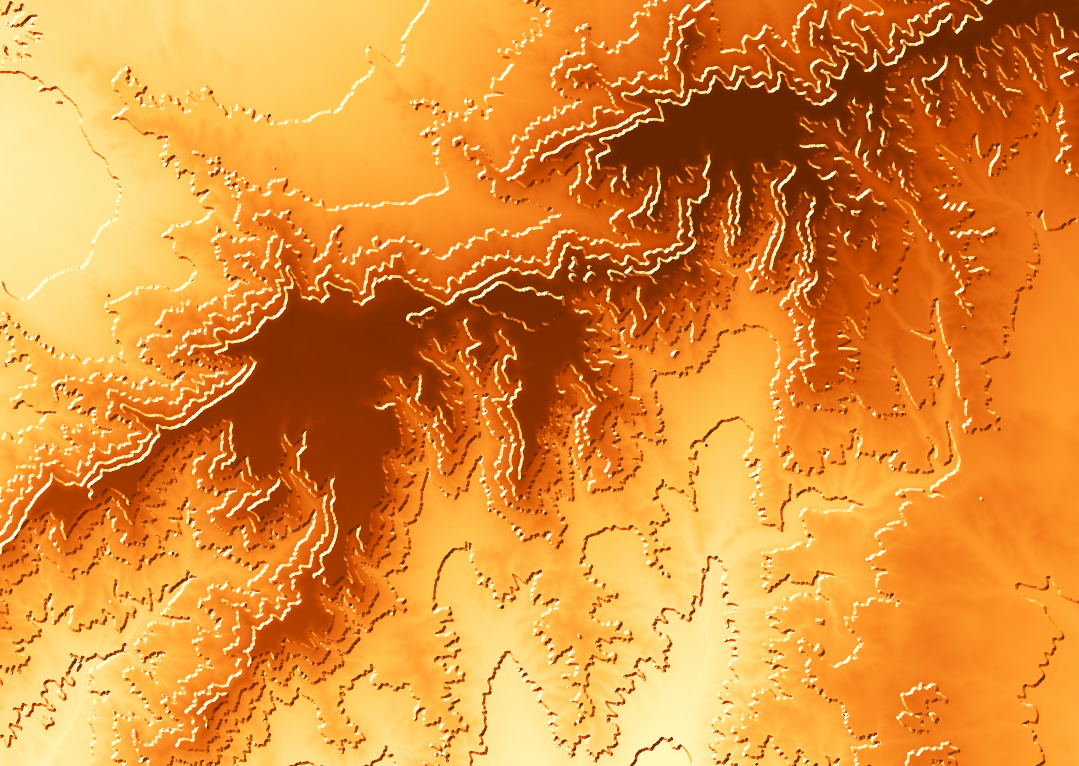 Y si vemos nuestro visor debería aparecernos un efecto con el siguiente, ojo el MDT simbolízalo con la escala de colores relacionada con la curva de nivel para tener un contraste coherente, juega con la visualización hasta que consigas el diseño que te guste.