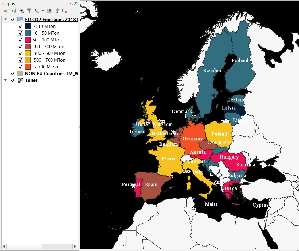 Si se elige el tema “Emisiones de CO2” el mapa que se despliega es el siguiente: