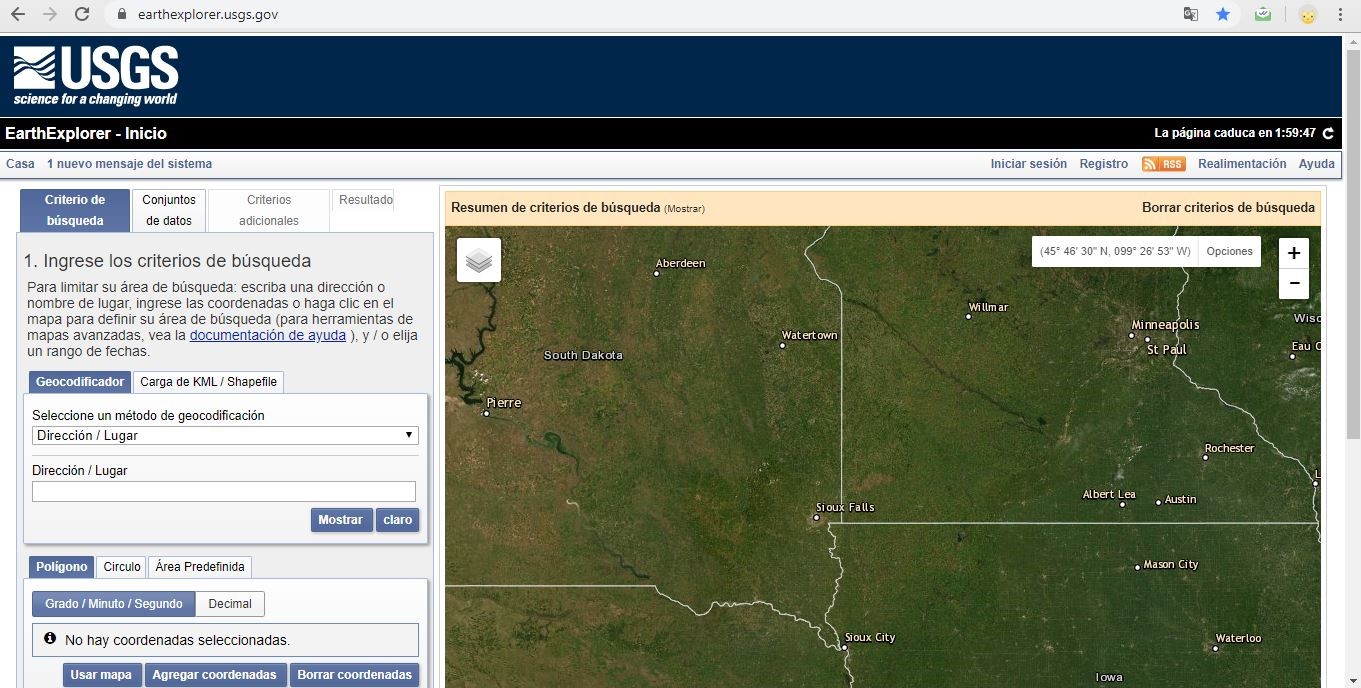 Lo primero que haremos será dirigirnos a la página de la USGS una vez en la web iniciamos sesión con nuestro usuario, si no tenemos usuario nos registramos.