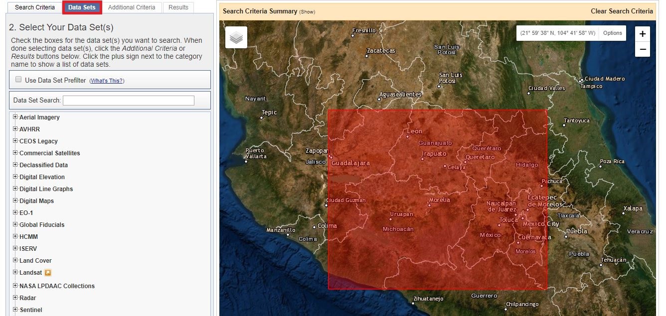 Para una mayor resolución de imagenes, te recomiento Land Viewer de EOS, ya que esta cuenta con una resolución de 10 km hasta 5 m.