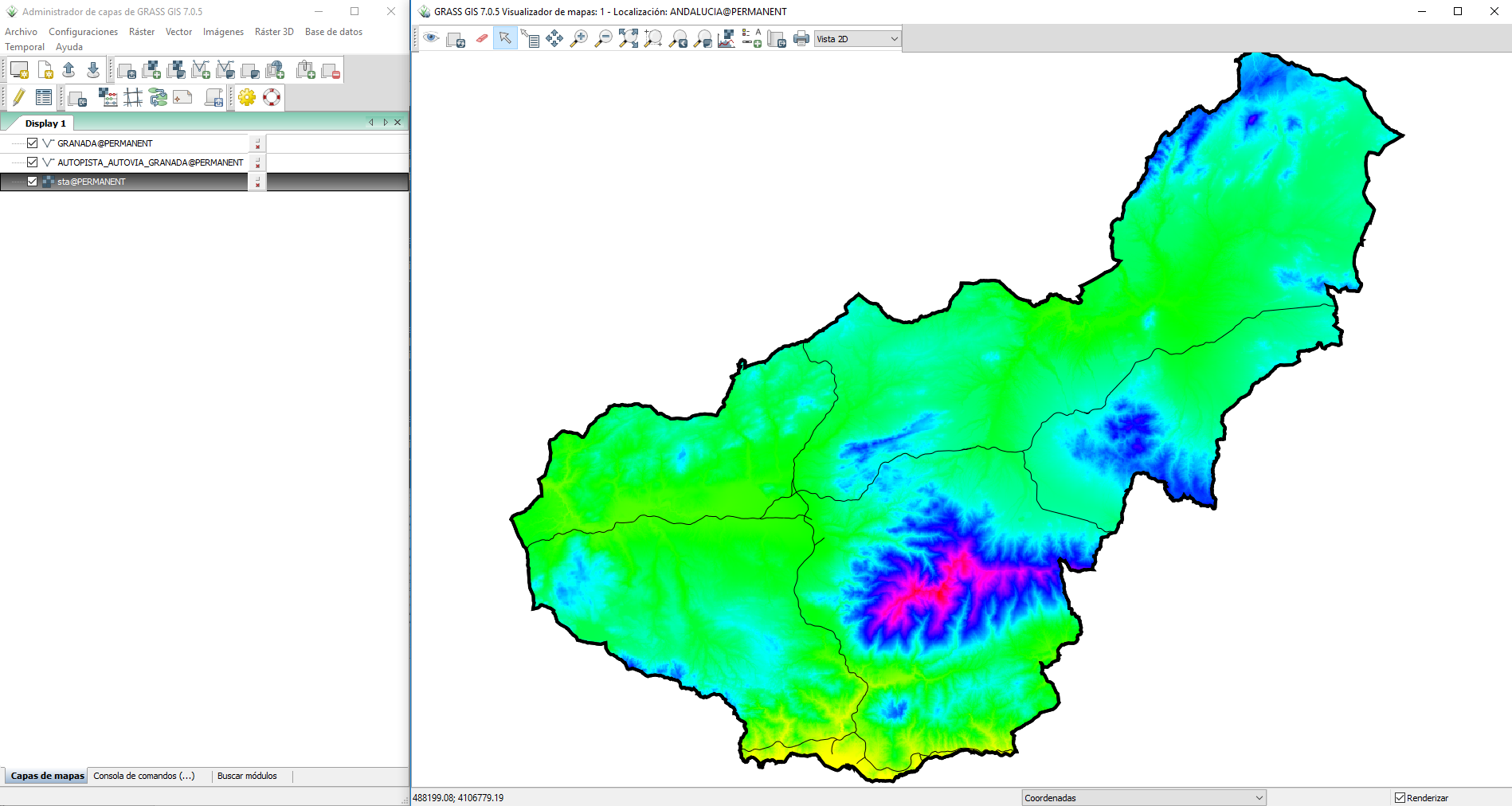 La representación 3D en GRASS es buena y permite establecer los parámetros de iluminación, perspectiva e inclinación.