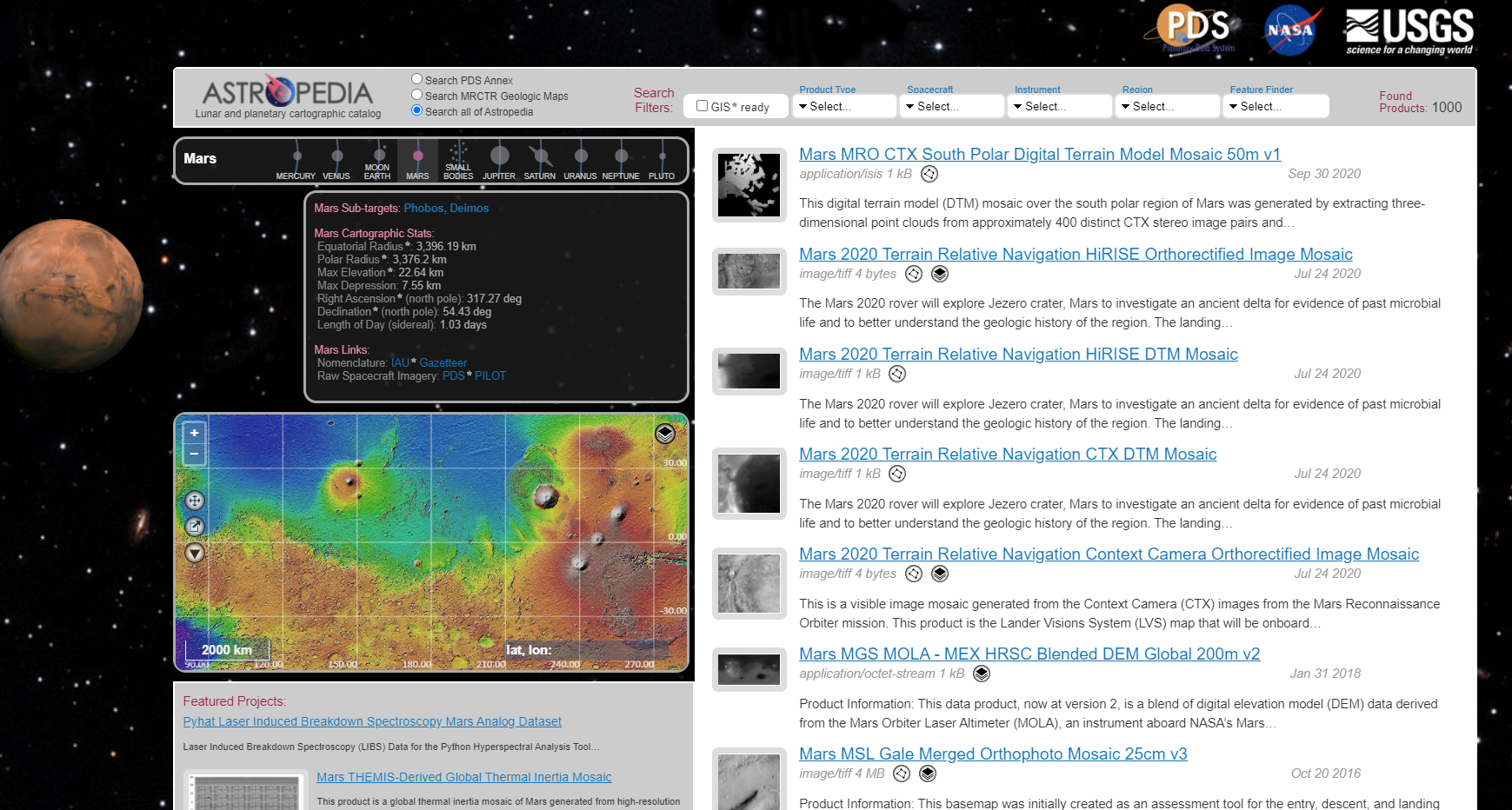 Hasta el punto que ya existen catálogos de bases de datos planetarios (y de la Luna) que podemos descargar y utilizar en nuestro GIS , por supuesto con una proyección adecuada.