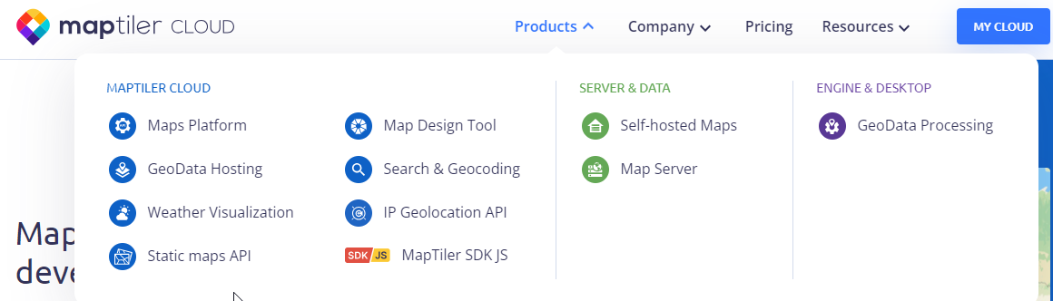 Esta empresa está evolucionando y lleva incorporando diferentes productos, servicios, incluso un SDK (MapTiler SDK JS) con el que podrás desarrollar tus aplicaciones.