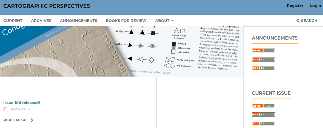 1. Cartographic Perspectives : que es la revista académica de esta sociedad en la que se publican artículos académicos por pares y lo positivo es que se puede acceder de manera gratuita.