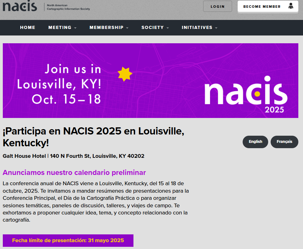 1. Y por supuesto su conferencia anual NACIS 2025 , encuentro dónde se pueden presentar trabajos, asistir a conferencias, exponer tu mapa en la “Map Gallery” y concursar.