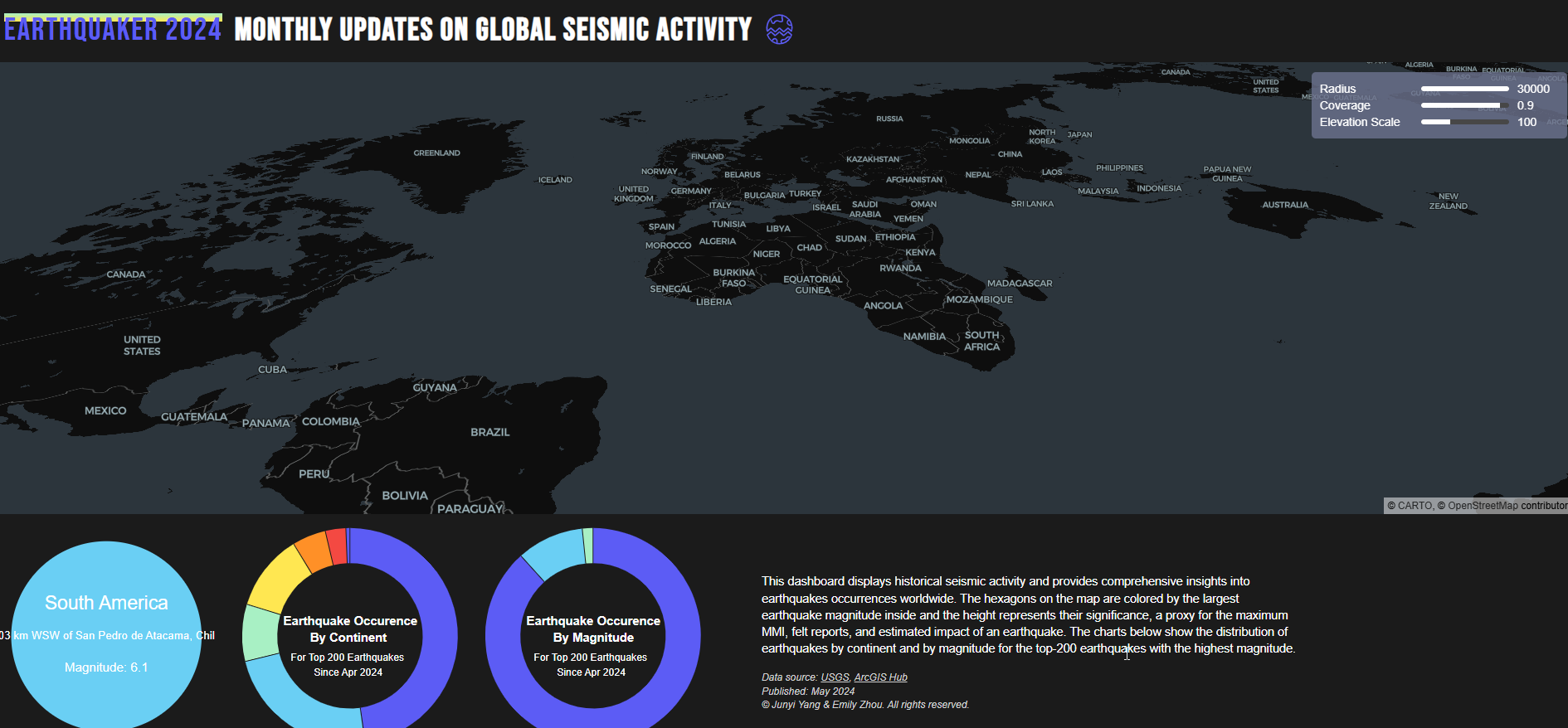 También se premian a mapas dinámicos como esteEarthQuaker: A Cloud-Based Interactive Dashboard of Global Seismic Activities