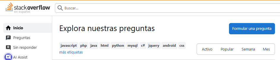 Si necesitas un foro de consultas o para esclarecer tus dudas, “Stack Overflow” es un importante referente, hay muchos usuarios y sueles recibir rápido una respuesta, si no has encontrado una referencia anterior dónde ya se ha resuelto y podrás chequear la solución.