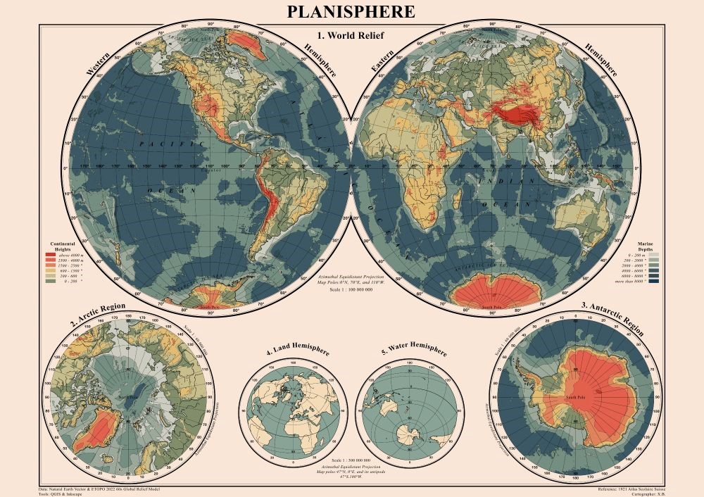 5. El siguiente mapa también lo ha creado @xiongbiao.bsky.social sobre el día 5 dedicado a la Tierra: