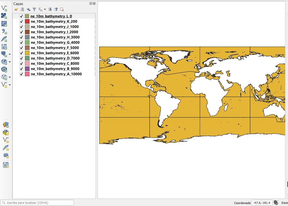 En esta entrada se va a trabajar con datos de batimetría obtenidos desde la web Natural Earth con el objetivo de realizar una labor de edición y análisis de los datos en QGIS para posteriormente subirlos a una cuenta de usuario abierta en Mapbox para desplegar un visor cartográfico.