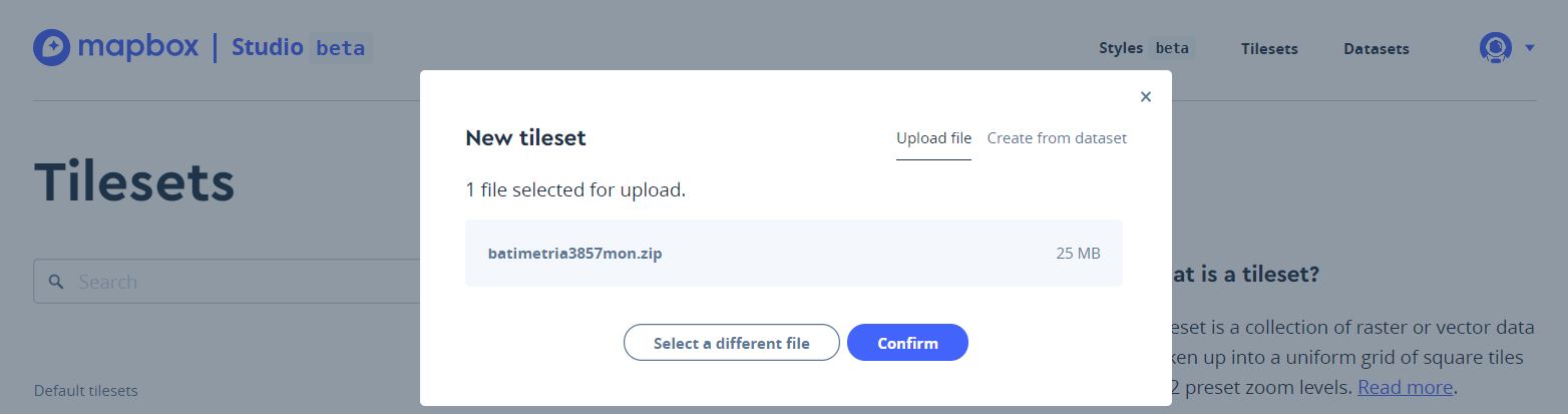 Entonces nos dirigimos a Mapbox y desde tu cuenta de usuario, crea un nuevo “Tileset” y subes la capa en formato comprimido: